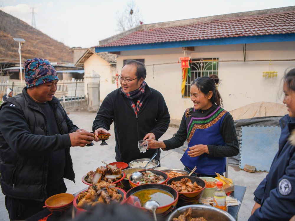 巴木说,过去来了客人,彝族村落里将肉煮好,砍成大坨,大家席地围坐,抓着吃。“你看看现在,村里发生大变化。脱贫攻坚让彝族村寨战胜了贫困,我们这儿液化气灶台取代了火塘,饭桌取代了席地而坐。”