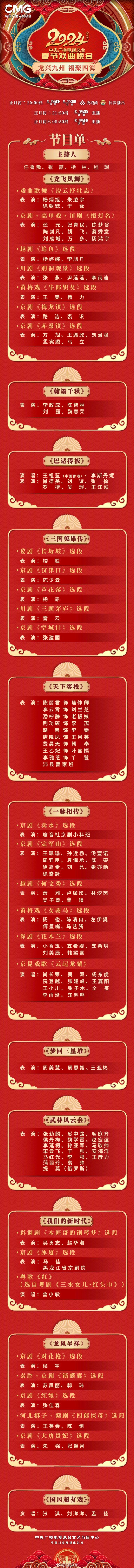 2024总台春节戏曲晚会节目单新鲜出炉!梨园群英集聚,国风新潮荟萃,开启新年大联欢,带你探寻中华戏曲的魅力!今晚八点档 CCTV-1、CCTV-11、CMG戏曲同步播出,你最期待哪个节目?