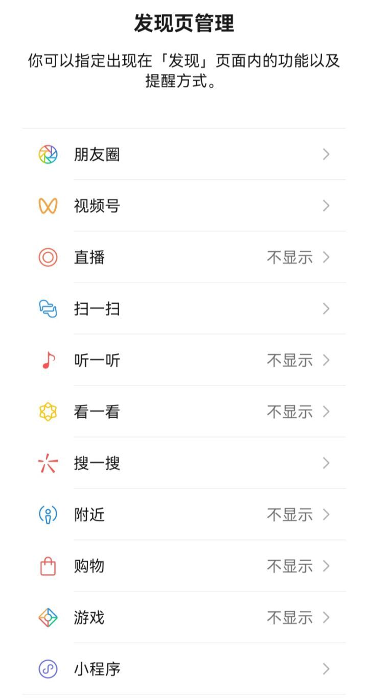 打开发现页设置,也无法再添加“摇一摇”功能。可见这个功能已经被微信彻底抛弃了。