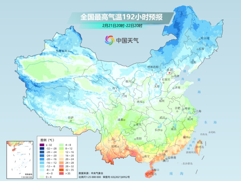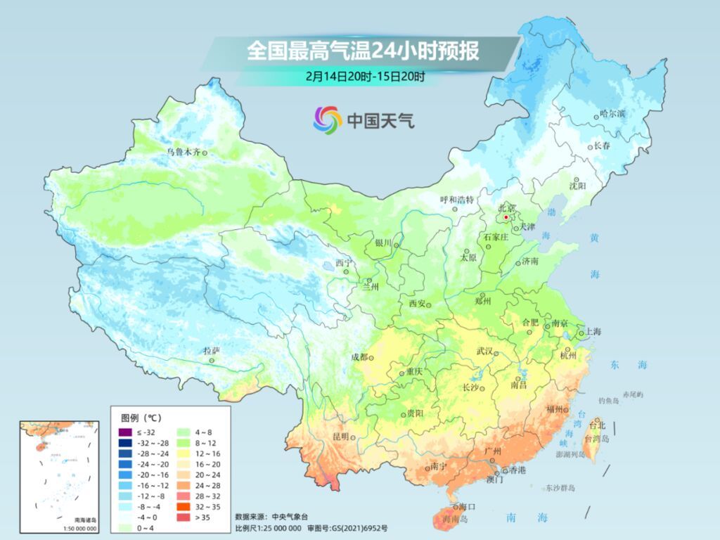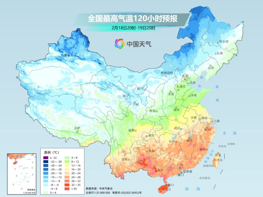 今天南北气温的对比,只是春节假期接下来几天我国大部地区气温走势的演练,冷暖切换将频繁上演!