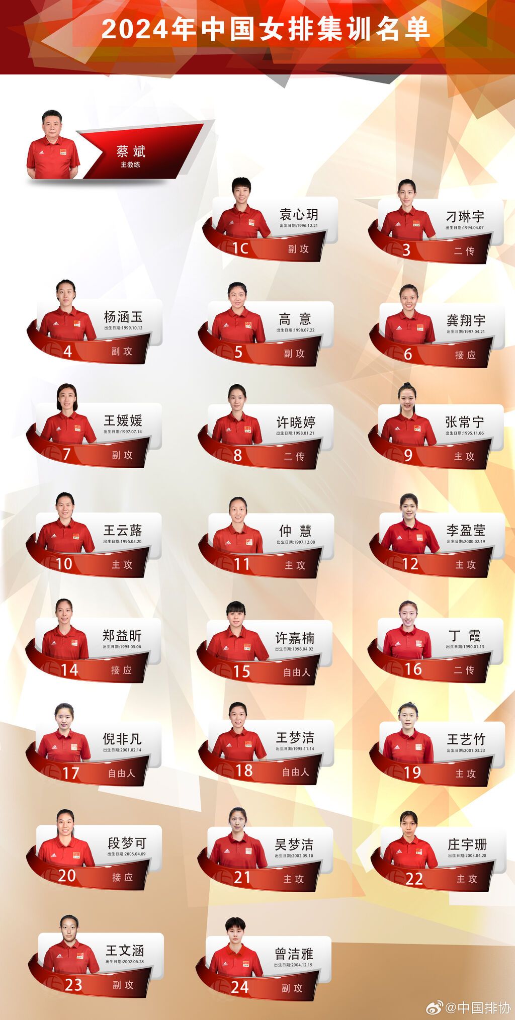 中国排协发布集训通知,张常宁出现在名单当中。