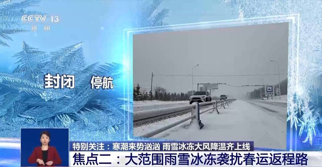 焦点二:封闭、停航。随着寒潮自西向东再南下的脚步,多地出现雨雪及路面结冰,导致新疆、内蒙古、辽宁、吉林、黑龙江、山东等多个省份的高速公路受到影响,一度有近700个收费站关闭。