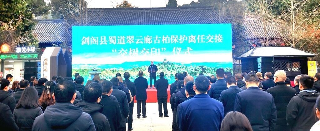“接过接力棒,我深感责任重大、使命光荣。下一步,我将严格落实离任交接‘交树交印’制度,守护好这一方青绿……”2月20日,在蜀道翠云廊古柏保护离任交接“交树交印”仪式上,剑阁县汉阳镇党委书记张轩代表本届镇党委对蜀道翠云廊古柏保护作出庄严承诺。