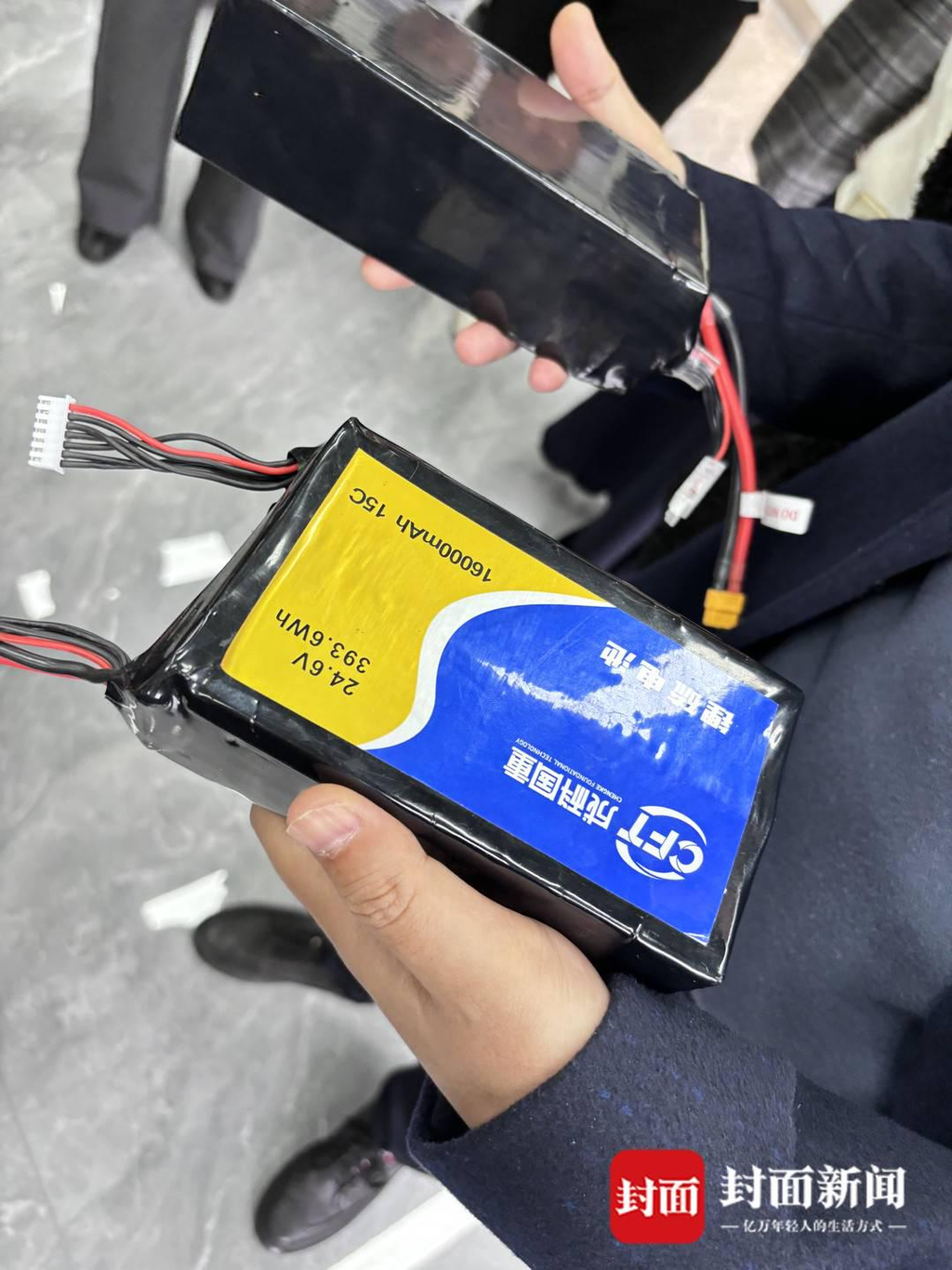不仅比能大,锂硫电池的质量还很轻。说到这里,雷天宇拿出一块普通锂电池和一块锂硫电池,封面新闻记者用手掂了掂,发现相同容量的两块电池,锂硫电池的质量明显更轻。