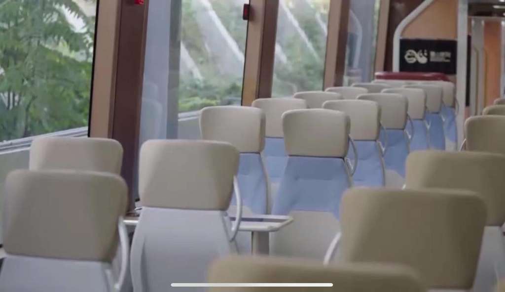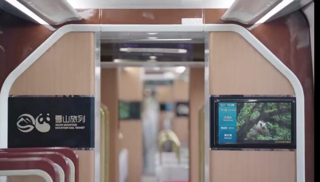 参观时,记者注意到了一辆很特别的列车,它超大的观景车窗和柔软舒适的座位吸引了记者的目光。据介绍,这是一辆“雪山旅列”,将投用在都江堰到四姑娘山全线123.2公里的路程当中。届时,乘客们可以在车内,欣赏沿途雪山的美景。