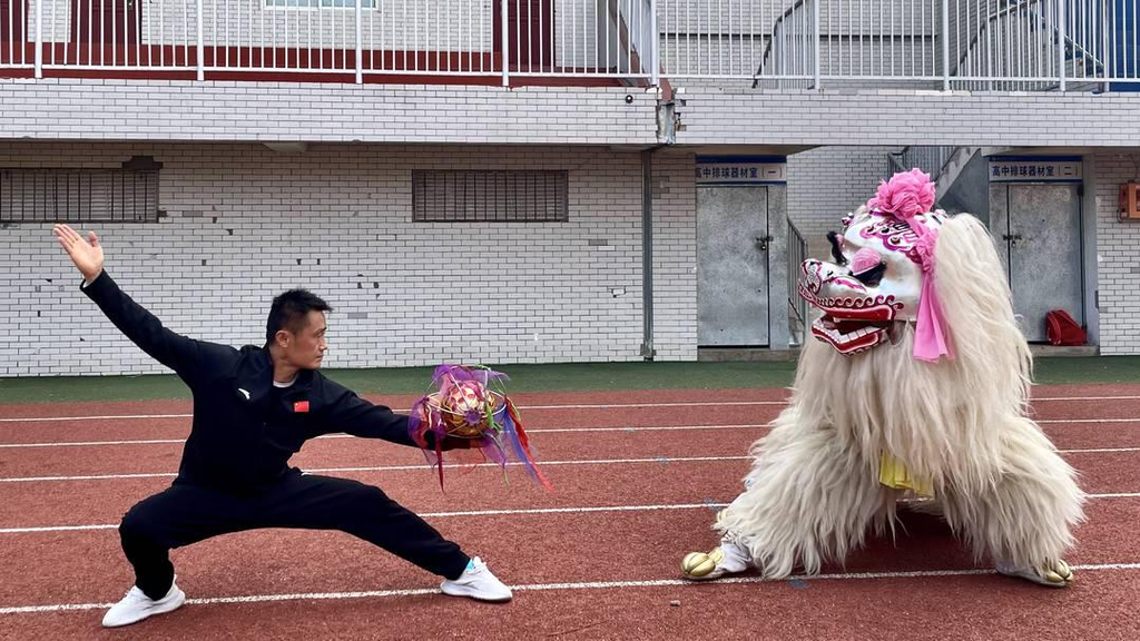 高中生组成校园舞狮队