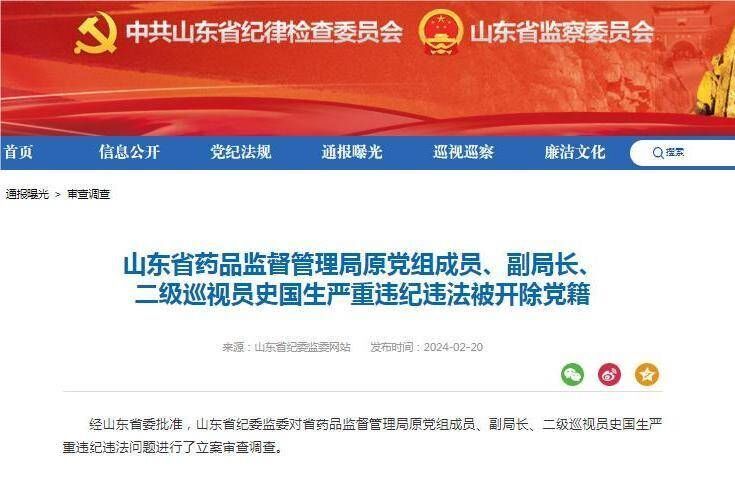 近日,据山东省纪委监委消息,山东省药品监督管理局原党组成员、副局长史国生构成严重职务违法并涉嫌受贿犯罪,决定给予史国生开除党籍处分,将其涉嫌犯罪问题移送检察机关依法审查起诉。公开资料显示,史国生于2019年5月被任命为山东省药监局副局长,2021年6月年满60岁,被免去职务。