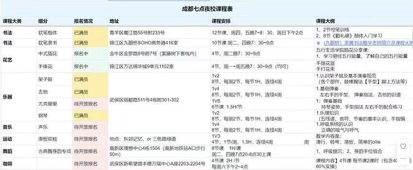 五花八门的副业她都尝试过,目前比较稳定、收入占比最大的是去年11月开始做的夜校。那段时间,年轻人上夜校的话题火爆,她发现成都还没有,于是第一个在成都建起夜校社群,以组团的人数优势去找商家谈低价课,类似于兴趣班的拼多多,目前社区差不多有5000人。