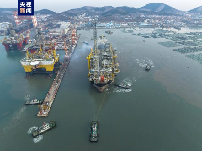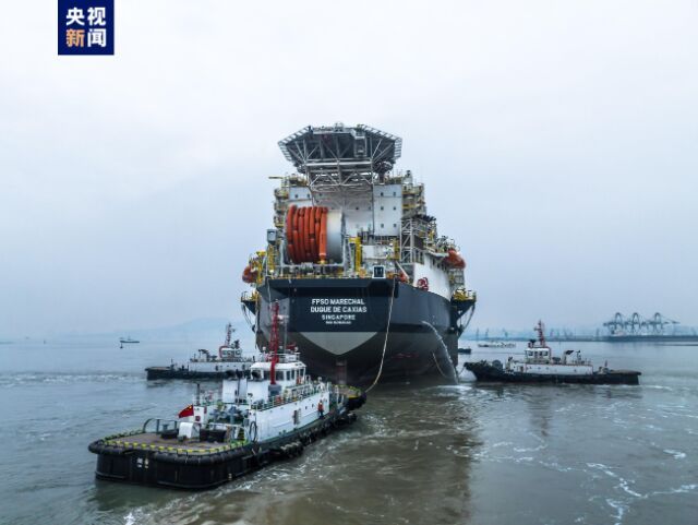 2月24日,由中集来福士改装建造的30万吨级海上浮式生产储油船从烟台出发前往巴西。