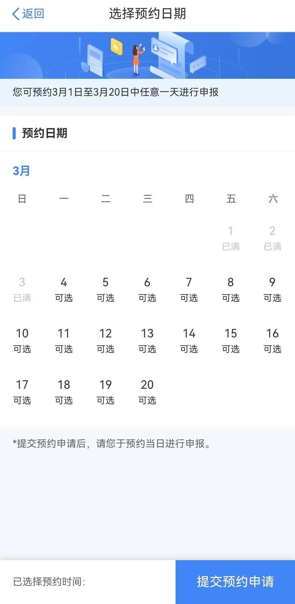 个税APP显示,截至2月29日,3月1日-3月3日已经约满了。