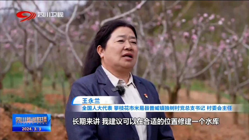 全国人大代表、攀枝花市米易县普威镇独树村党总支书记 村委会主任 王永兰:短期内,我认为可以先修建一些引水渠,把部分距离较远的河沟的水通过引水渠引入田地进行灌溉, 长期来讲,我建议可以在合适的位置修建一个水库,这样能彻底解决普威镇二半山区农业灌溉的问题。