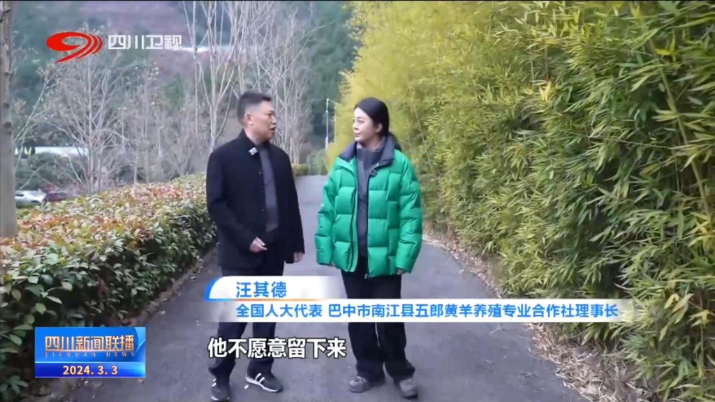全国人大代表、巴中市南江县五郎黄羊养殖专业合作社理事长 汪其德:可以从本地农民当中,属于我们那个土专家呀,那类似的人来培养。(还有)偏远地区,真正的有技术的人,他不愿意留下来,所以我们就想到通过这个“周末工程师”这种来(解决)。比如周末、节假日,给他一定的待遇,让他来为我们服务。