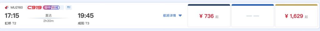 据了解,C919执飞的上海虹桥飞西安咸阳航班号为MU2152/2157、MU2160/2169。首班C919计划当天8时20分从上海虹桥机场出发,计划10时45分到达西安咸阳国际机场。此前,东航C919已开通上海虹桥往返成都天府航线以及上海虹桥往返北京大兴航线。