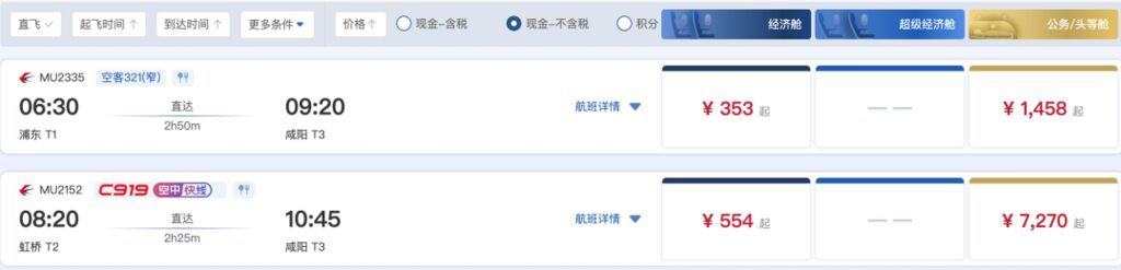 另外,记者从东航官网了解到,3月8日起,国产大飞机C919执飞航线将上新——上海虹桥飞西安咸阳航线,每天往返各两班。同时,3月7日起,C919执飞的成都航线增加到每天往返各四班,航班号为MU9197/9198、MU9189/9190、MU9187/9188、MU9185/9186,航班时刻覆盖“早中晚”。