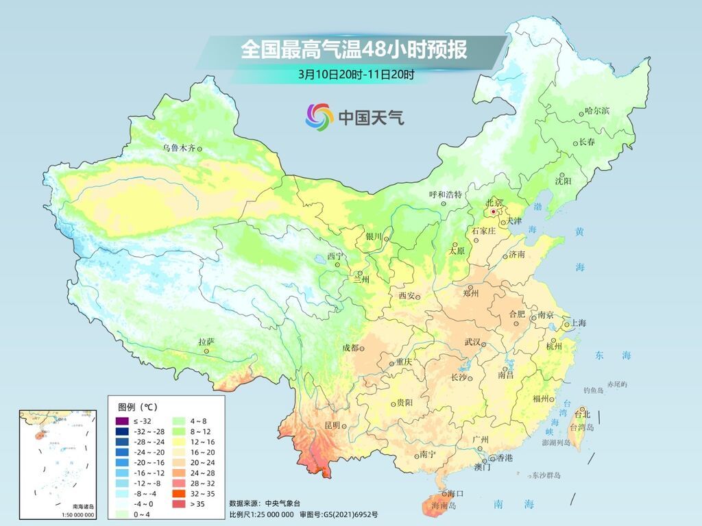 没有阴雨天气拖慢速度,北方气温将在波动中持续上扬。预计在11日和14日前后,分别迎来两次气温高点,其中11日最高气温超过20℃的范围将覆盖陕西南部、河南、河北南部、山东西南部等部分地区,北京、石家庄、西安等地都将迎今年以来最暖的一个白天。