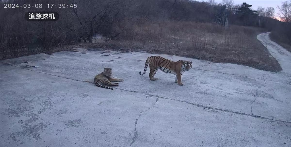 ·吉林延边四只东北虎在鱼塘旁游荡,当地:已通知村民注意。