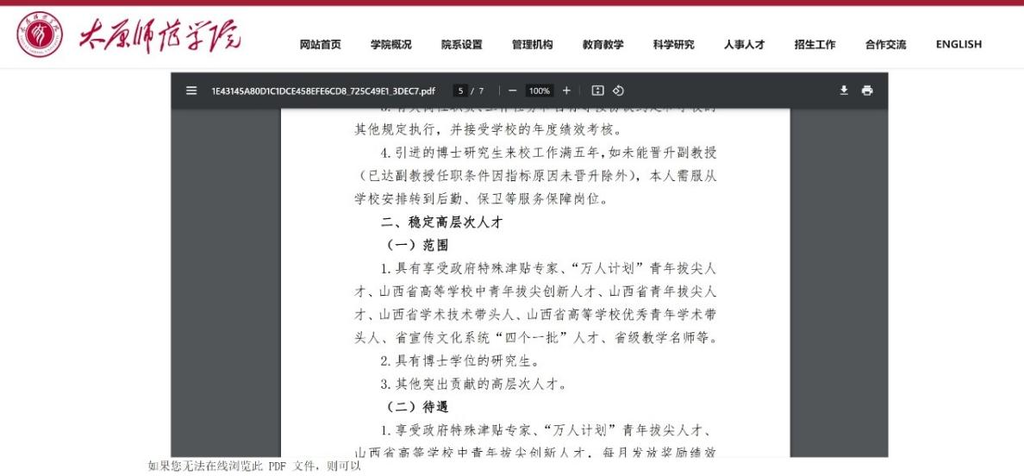 ·太原师范规定“博士五年未升副教授转岗后勤保卫”引关注,该校已讨论新人才计划。