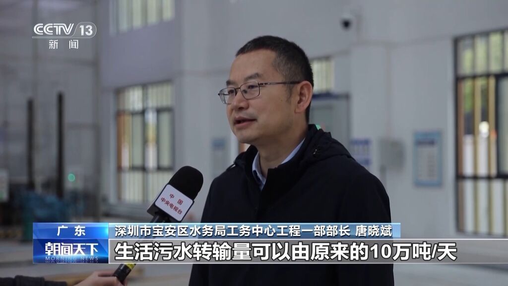深圳市宝安区水务局工务中心工程一部部长 唐晓斌:生活污水转输量可以由原来的10万吨/天提升到25万吨/天,对进一步改善茅洲河的水质是有很大好处的。