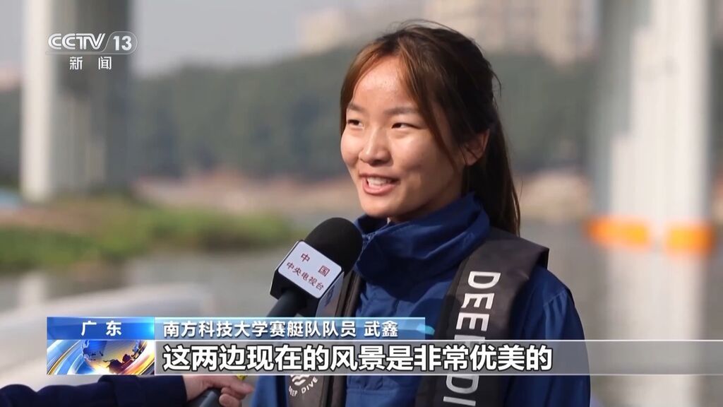 南方科技大学赛艇队队员 武鑫:这两边现在的风景是非常优美的,我们在这样的河上赛艇,是很身心愉悦的一件事情。