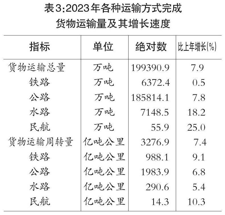 全年货物运输总量19.9亿吨,货物运输周转量3276.9亿吨公里。全年港口完成货物吞吐量4471.1万吨,比上年增长39.0%,其中外贸货物吞吐量123.0万吨,增长0.4%。港口集装箱吞吐量31.9万标箱,增长10.7%。年末高速公路建成里程9803公里。