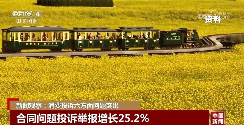 2023年,合同问题投诉举报194.3万件,同比增长25.2%。以旅游服务投诉为例,2023年,全国12315平台接收旅游服务投诉举报同比增长2.2倍,其中合同问题占比18.1%,问题主要集中在商家设定不合理条款导致退款困难、商家未按合同约定提供相应的商品或服务、以不公平格式条款要求消费者支付高额违约金等。