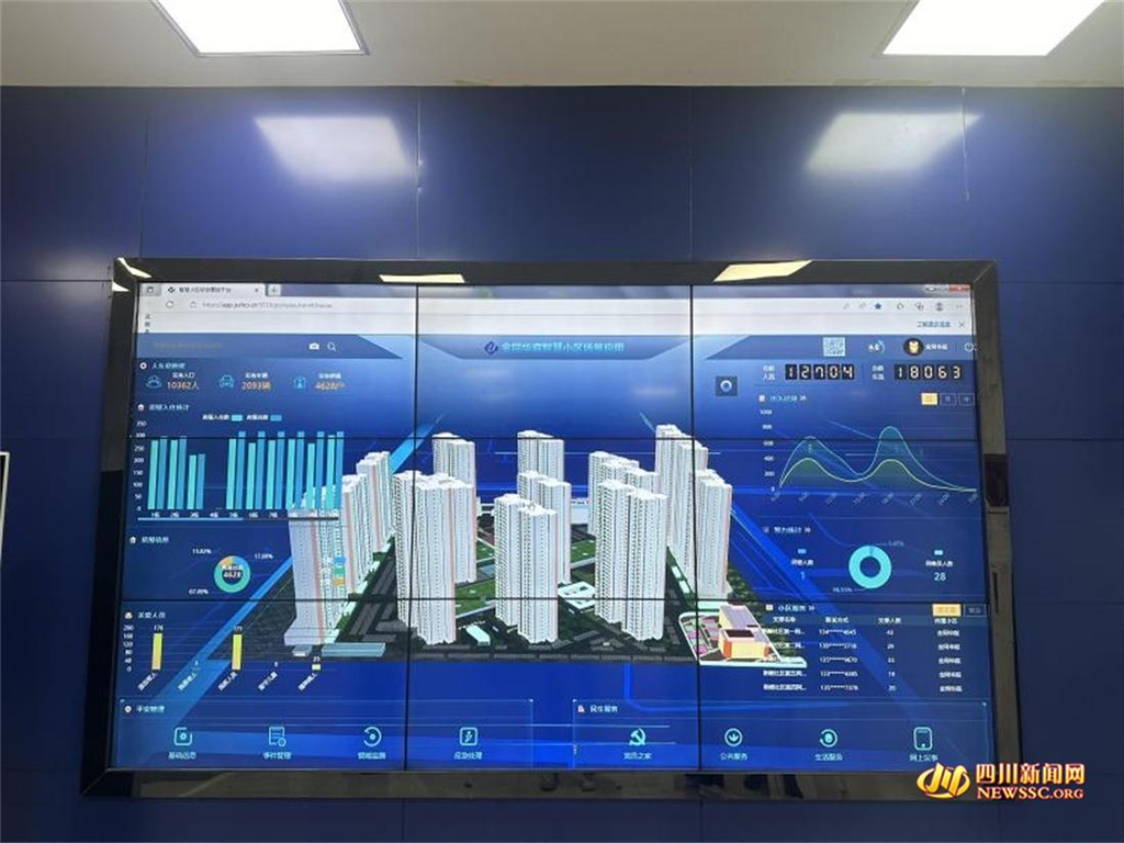 “这里便是智慧平台的‘大脑’。”走进新峰社区智慧治理工作站,一块几乎占据了一面墙的LED显示屏映入眼帘。新峰社区居委会委员何治昀介绍到,通过网格员入户、物联设备感知等,所有数据都集成在这个“大脑”中。屏幕上,事件管理、基础数据采集、智能监测、应急处理、生活服务、网上议事等板块依次排列。工作人员用鼠标随意选取某一栋单元楼,该楼栋常住人口、流动人口以及相关信息就能一目了然。