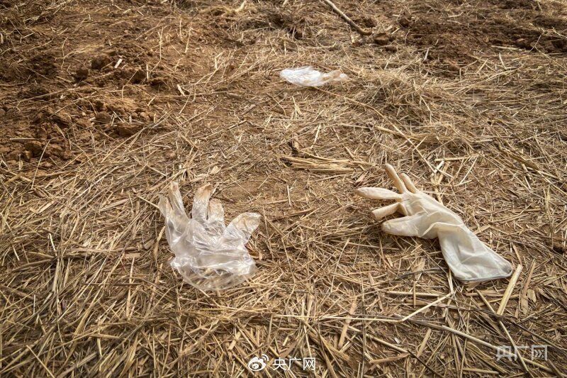 记者走进案发地看到,蔬菜大棚入口被荒草和数根竹竿拦挡,大棚内部杂草丛生,长约1米、宽约60厘米的埋尸坑已被填平,地面上散落着一次性手套和橡胶手套,当时遗体被发现时的痕迹仍清晰可见。