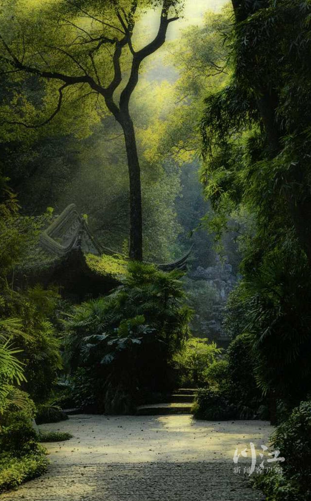 斑驳的光点从重重叠叠的枝叶间透出来
