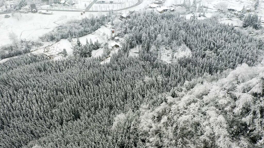 秋日层林尽染,冬日白雪皑皑