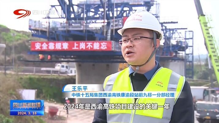 中铁十五局集团西渝高铁康渝段站前九标一分部经理 王乐平:2024年是西渝高铁项目建设的关键一年,时间紧、任务重,一分部今年计划管段内主体工程全部完工,打造以黄荆村特大桥、葫芦坝特大桥和龙潭水库特大桥等重难点工程,保障各项施工生产按计划安全平稳运行。