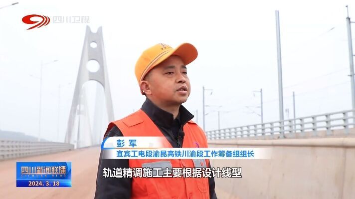 宜宾工电段渝昆高铁川渝段工作筹备组组长 彭军:轨道精调施工主要根据设计线型,结合轨道测量数据,对轨道几何状态进行精确调整,以实现轨道数据达标,这将为高铁列车在轨道上平稳安全运行提供可靠保障。