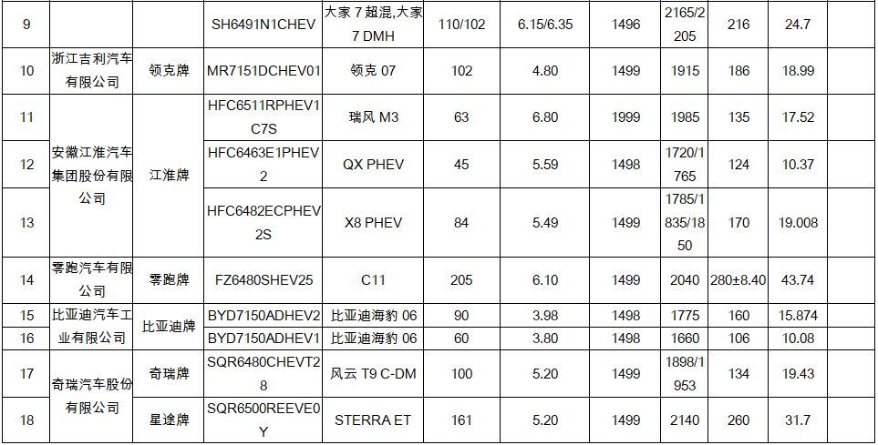 插电式混合动力乘用车18款