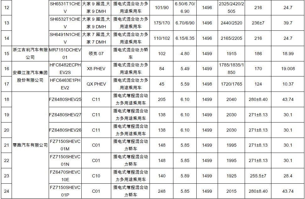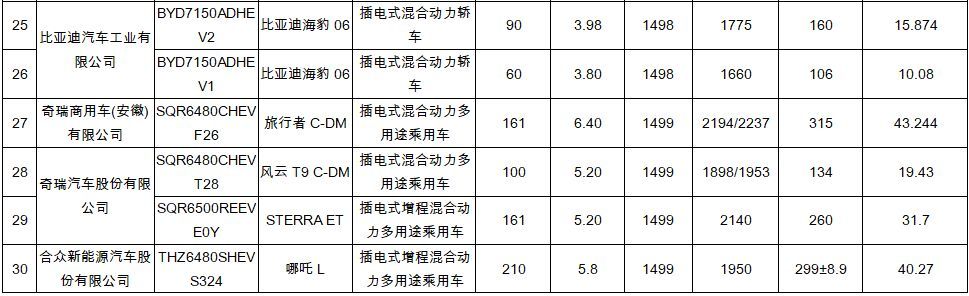 插电式混合动力乘用车30款