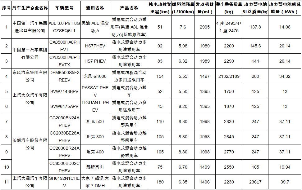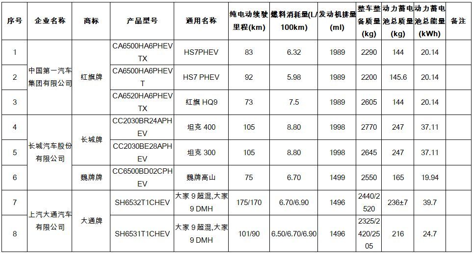 注:插电式混合动力汽车燃料消耗量仅包括传统燃料/不含电能折算。