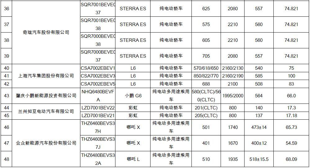 纯电动乘用车48款