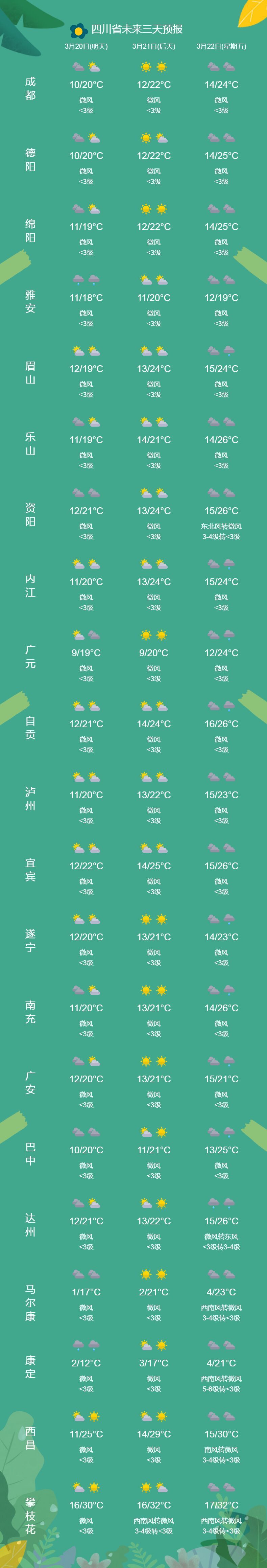 其他地方降温,盆地不少地方又在下雨,四川是不是要降温了?四川省气象台预计,20日,盆地大部以多云天气为主,西部沿山早晚有分散小雨,川西高原和凉山州东部的局部地方有阵雪(雨),21日—22日全省大部天气晴好。甘孜州大部和攀西地区以晴间多云天气为主。