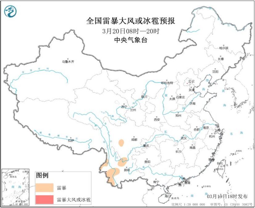 需要警惕的是,中央气象台预计,3月19日20时至20日20时,四川南部、云南西部和中部等地的部分地区将有雷暴天气。