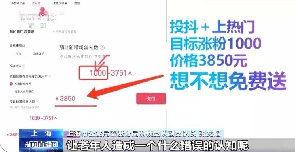 上海市公安局奉贤分局刑侦支队副支队长 张文韬:它虚构了粉丝和获利之间的关系,他诱导老年人来购买这些大量的粉丝,让老年人造成一个错误的认知,就是我只要有粉丝,我就一定能赚钱,而这些粉丝经过我们查证又都是一些僵尸粉(假粉丝)。