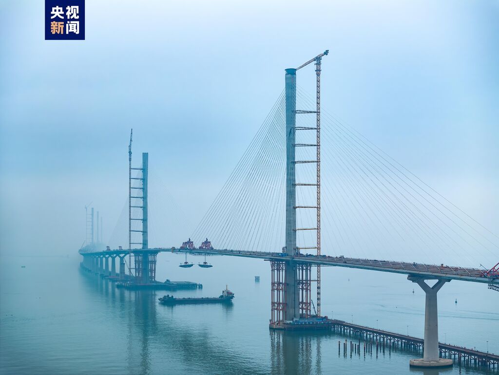 目前,黄茅海跨海通道项目进展顺利,黄茅海大桥和高栏港大桥5座主塔均已封顶,高栏港大桥已完成合龙,狮山隧道与象山隧道两座隧道先后贯通。黄茅海大桥东塔钢箱梁架设完成30节、中塔钢箱梁架设完成21节、西塔钢箱梁架设完成30节,力争年底主体工程完工。