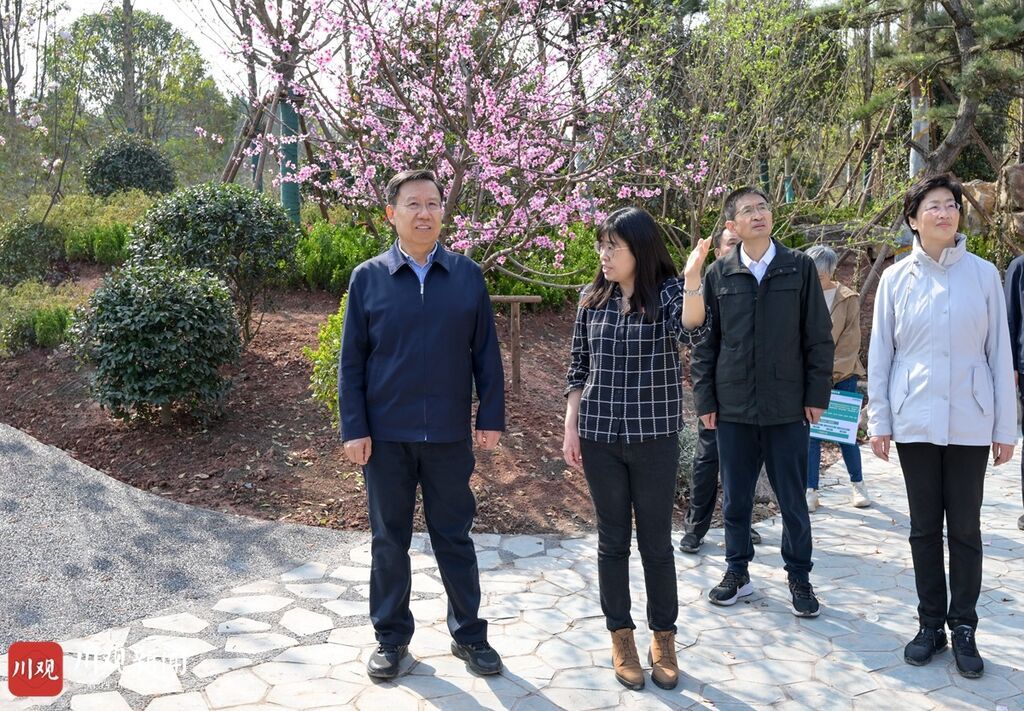 随后,王晓晖来到中华园艺展区成都园、北京园,察看了解总体设计、建筑布局、景观打造等情况。成都园融合了杜甫草堂、武侯祠、望江楼等建筑风格,园内植物充分展现了四川生态多样性。北京园整体设计体现了北方园林特色,古朴庄重、雄浑大气。王晓晖边走边看边问,沿途听取有关情况介绍,对各展园的设计给予点赞,鼓励大家依托展园定位,突出花卉园艺特点,营造多样的植物群落和植物景观,向世界展示美丽中国崭新画卷、巴山蜀水靓丽风采。王晓晖指出,绿色低碳是成都世园会的重要理念,要将这一理念充分体现在建设、展览全过程,强化科技赋能,尽可能多的采用绿色、环保、循环、节能技术和低碳、自然、生态材料,让成都世园会既展现高颜值、又实现低能耗。