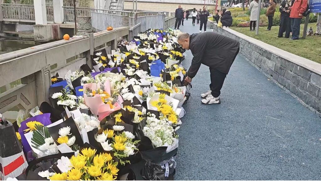 在事发地东坡湖水闸河边,许多市民自发来到河边,为李政送上鲜花,表达哀思。
