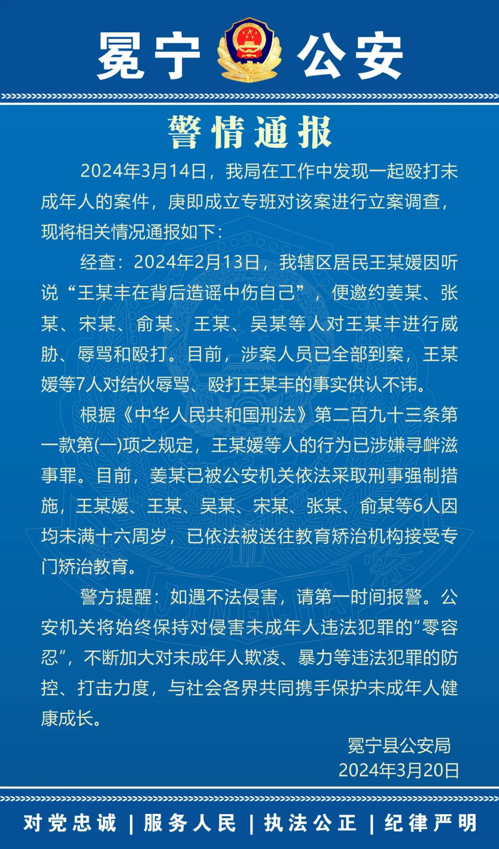 ·四川警方通报14岁女孩纠集多人围殴男孩:1人被采取刑事强制措施,6人被送往教育矫治机构。