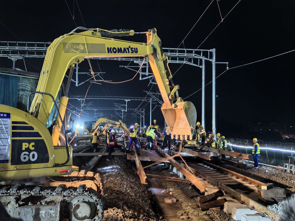自3月10日首组道岔插铺封锁施工以来,现场有300余名施工人员、8台施工机械同时作业,历经5个Ⅱ级天窗点封锁施工,在安全风险高、封锁施工时间紧、施工环境复杂等情况下,顺利完成5组道岔的插铺施工,拆除旧钢轨340米,旧轨枕560余根,补充道砟400余立方米。至此,巴南高铁全线轨道工程全部完成。