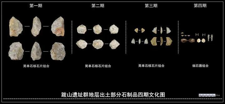 从旧石器技术的发展过程来看,可分为4期,前3期以石核—石片技术的发展为标志,第4期则体现出以船形细石核为代表的技术特点,技术传统承前启后,发生了明显的提升。