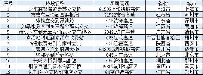 清明节期间,全国高速公路预计易发生拥堵缓行的路段,如表1所示。
