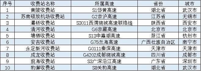 清明节期间,全国高速公路预计易发生拥堵缓行的收费站,如表2所示。