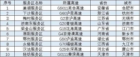 清明节期间,全国高速公路预计较繁忙的高速公路服务区,如表3所示。