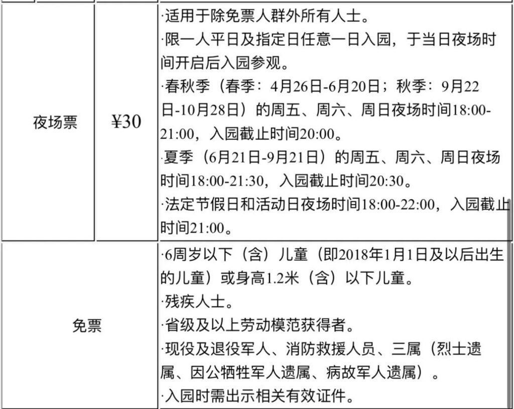 1.所有参观者均须持有效身份证件入园(包含身份证、户口本、中国港澳居民来往内地通行证、中国台湾居民往来大陆通行证、外国人永久居留身份证、护照),享受优惠票或免票政策人士须持有效优惠凭证。