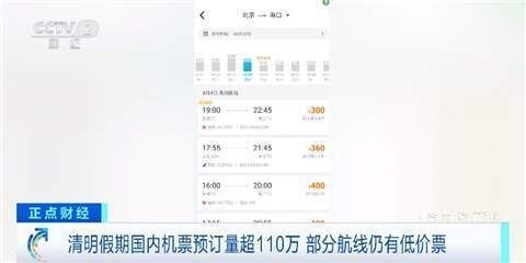 数据显示,清明假期国内机票预订量超110万,多家航空公司纷纷新开航线或加大热门航线频次,此外,还有一些航线低价票也可选择。