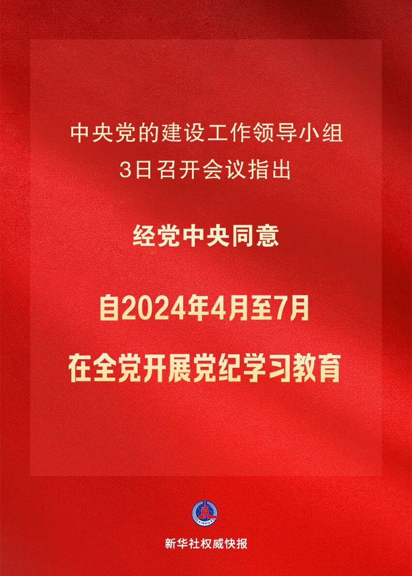 新华社北京4月3日电 中央党的建设工作领导小组3日召开会议,学习贯彻习近平总书记关于党纪学习教育的重要讲话和重要指示精神,听取党纪学习教育准备工作情况汇报,研究部署党纪学习教育工作。中共中央政治局常委、中央党的建设工作领导小组组长蔡奇主持会议并讲话,中共中央政治局常委、中央党的建设工作领导小组副组长李希出席会议并讲话。